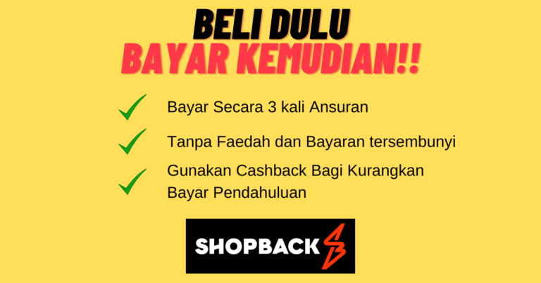 Boleh beli dengan ansuran TANPA FAEDAH oleh SHOPBACK, siap berpeluang dapat cashback dan macam-macam lagi!!