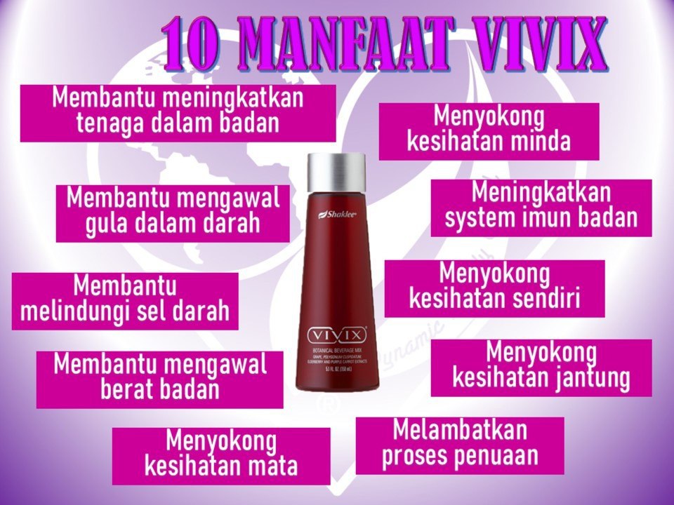 Minuman botani lazat yang mengandungi campuran botani Anggur Muscadine, Ekstrak Eldeberi Eropah, Ekstrak Knotweed Jepun dan Ekstrak Lobak Ungu.